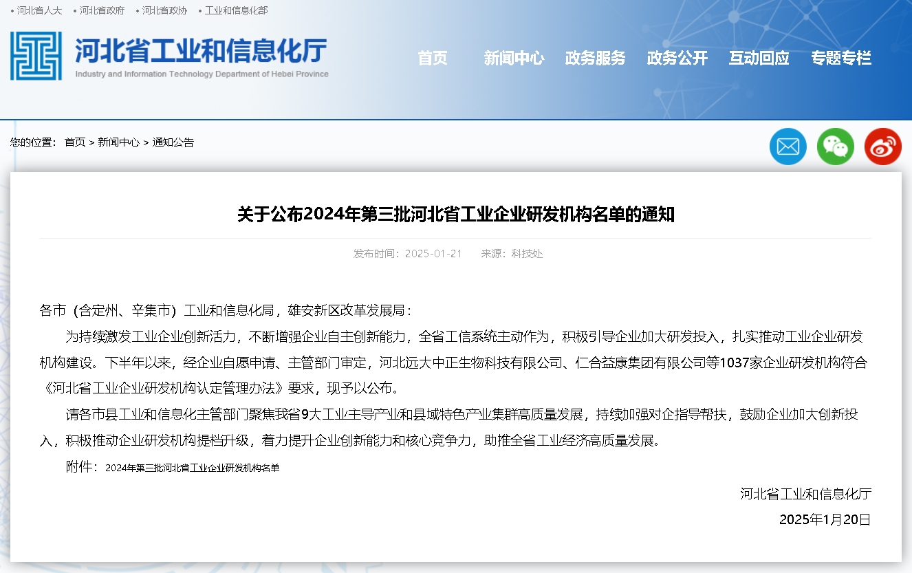 2025年1月21日,河北省工業(yè)和信息化廳發(fā)布了《關(guān)于公布2024年第三批河北省工業(yè)企業(yè)研發(fā)機(jī)構(gòu)名單的通知》。經(jīng)主管部門審定,河北子曰機(jī)械設(shè)備有限公司作為企業(yè)研發(fā)機(jī)構(gòu)符合《...